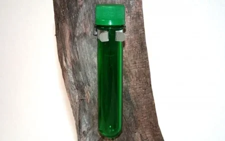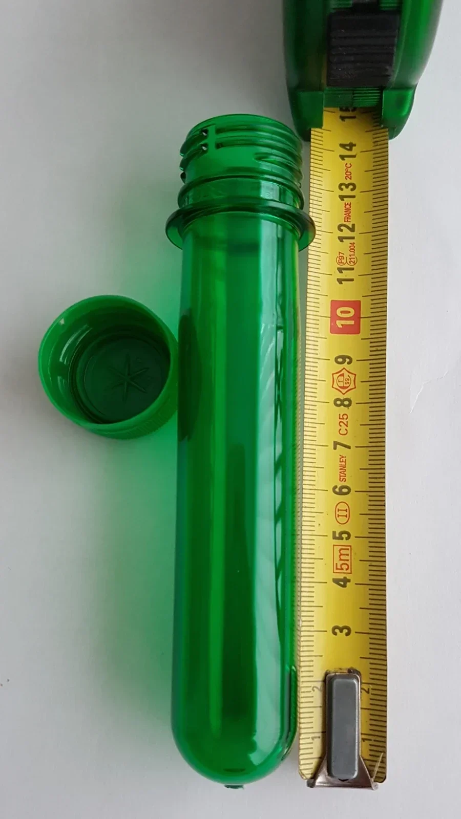 Deze PETling meet 34 mm doorsnee en is 14 cm lang. De binnenmaat is 22 mm.